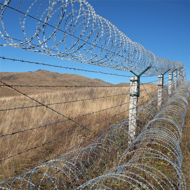 它采用鋼板(刀板)沖壓成型包附于熱鍍鋅鋼絲(芯線)之.上,由銳利尖角鍍鋅鋼板或