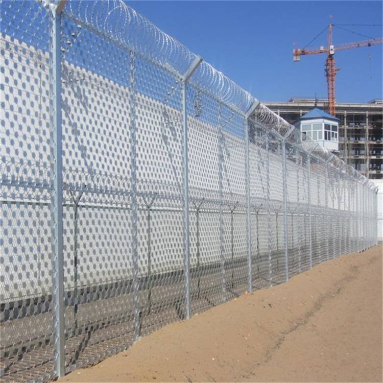 監(jiān)獄圍欄是用優(yōu)質(zhì)熱鍍鋅絲經(jīng)過精密的焊網(wǎng)機械設(shè)備焊接而成、網(wǎng)孔均勻、焊接牢固、防腐防銹、網(wǎng)面色澤潔白,鋅層厚,焊點處鋅量較高、網(wǎng)孔均勻,網(wǎng)面平整,焊點抗拉力強,防腐蝕能力高等特點。具有一般監(jiān)獄圍墻不具備的優(yōu)點。