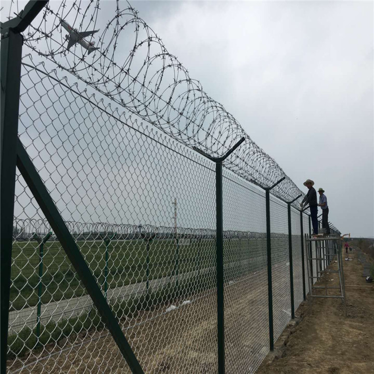 6、鋁包鋼機場護欄網燕尾柱機場圍界網鋁包鋼滾籠網施工時要行放線定位,圍網在施工時不會出現偏離和高低問題