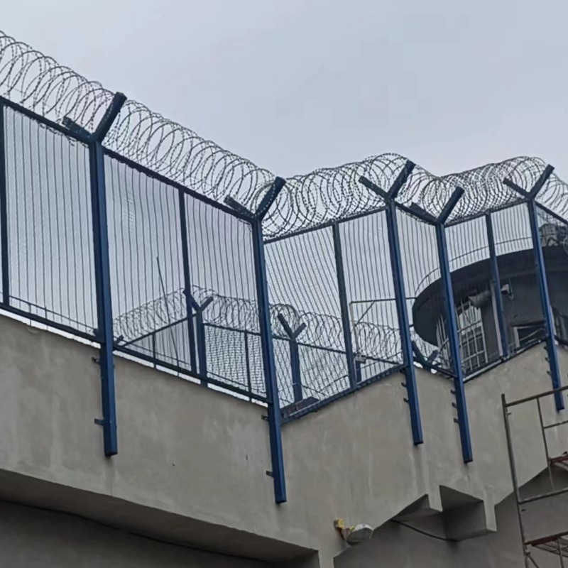 根據(jù)監(jiān)獄要求,四川監(jiān)獄巡邏道放風(fēng)道設(shè)立警戒區(qū),戒區(qū)隔離全部采用金屬藍(lán)色的358密紋網(wǎng), 358密紋網(wǎng)隔離網(wǎng)具有阻嚇、防攀爬等效果。是我國監(jiān)獄現(xiàn)代化管理中不可缺少的警備設(shè)施。