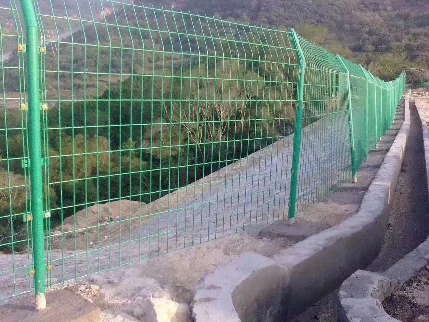 用于高速公路封閉隔離的護欄網稱之為高速公路隔離網,高度一般是1.8米,可以是框架護欄網也可以是雙邊護欄網或是三角折彎護欄網、荷蘭網等。還有一種用于高速公路中央隔離帶的護欄網稱為高速公路防眩網, 采用鋼板網制作,網體離地高度50-70公分左右,鋼板網護欄高度70-90公分左右。