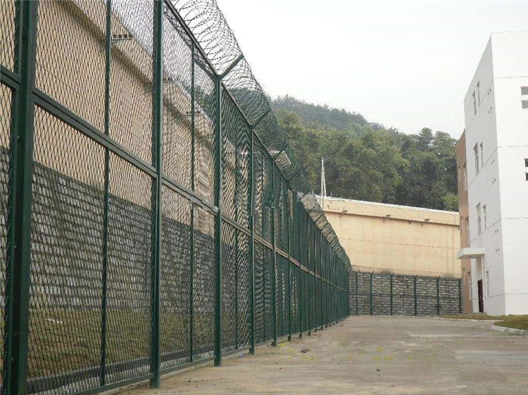 如果是水泥地面的話,只要直接打膨脹螺栓就可以。等到立柱安裝固定好之后,便可以直接上網了,這個步驟所需要的工具必須是專用的扳手以及套管和配套的螺絲,將網立在兩根立柱的中間,然后向上用力讓網和立柱的連接附件對齊,這之后就能夠用配套螺絲了,這四個配套螺絲是具有防盜效果的,為確保監獄這個特殊環境的安全,所以專門生產的。如果在安裝的時候連接附近并沒有完全對齊,那么就把已經對齊的安裝好,然后再進行剩下的附件安裝,就會顯得比較簡單了,最后再安裝刀片刺繩,安裝刀片刺繩時一定要把刀片刺繩用卡子卡在下面的護欄網上。而且這樣比較不會損壞圍網,附件安裝之后,監獄護欄網也等于安裝完畢了,最后再檢查各個螺絲的固定情況,確定沒有問題之后便可以。