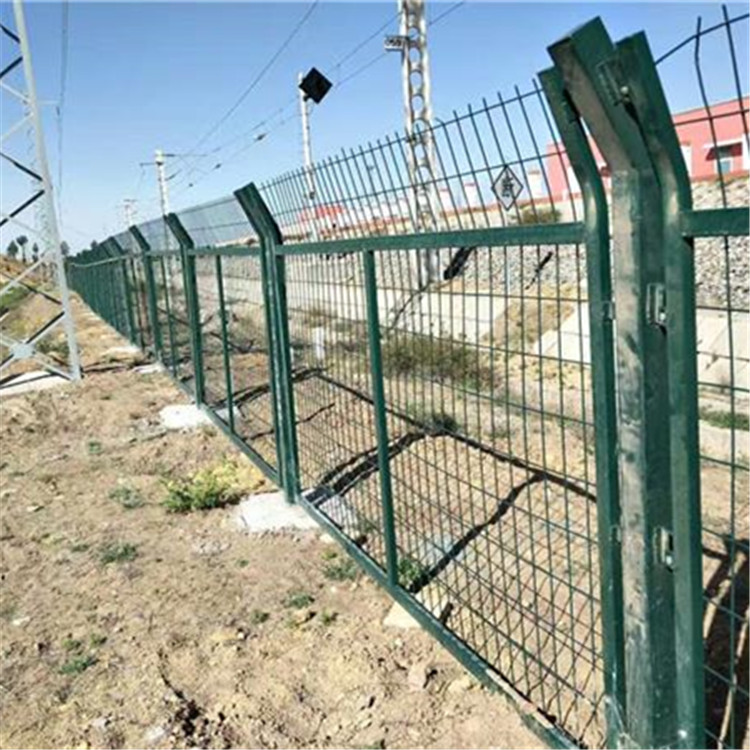 鐵路防護(hù)柵欄用途:高速公路、鐵路垃圾填埋場(chǎng)試驗(yàn)場(chǎng)地、鐵路封閉、高速公路護(hù)欄、開(kāi)發(fā)區(qū)圍界 場(chǎng)區(qū)圍網(wǎng)、體育場(chǎng)圍欄、小區(qū)防護(hù)。