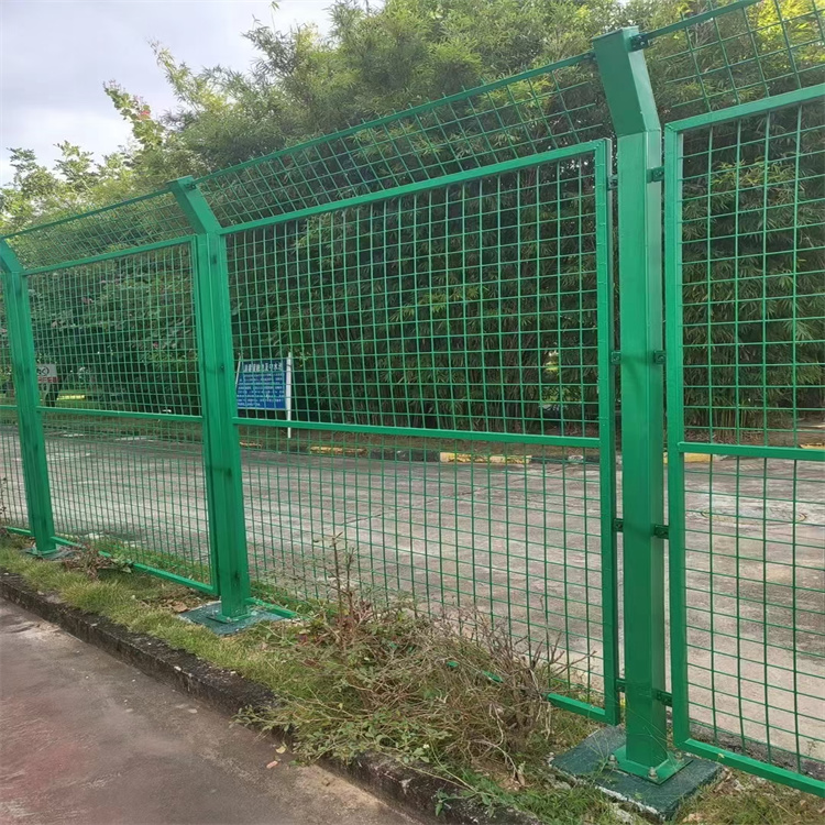 6、尺度和類型契合需求的隔離柵網片,應按圖紙規則的方法從立柱端部開端結實裝置到立柱的掛鉤上或將網片裝置在結構內,結構與立柱銜接應結實。一切的網片和鐵絲均應繃緊且不形,裝置高度應符合圖紙的要求。隔離柵裝好后,立柱根底都要進行最終的壓實處理。