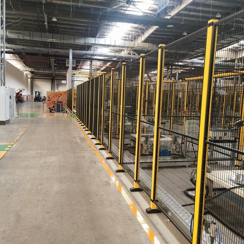 機器人安全圍欄,有區域隔離的效果,可以用圍欄劃分幾個區域,美觀整齊。出現故障時,還能起到隔離保護作用。多用警示黃色的型材及網,提醒安全作用。也可對配件進行顏色定制,如杯型地腳,連接件等也可制作成警示黃。還可以根據客戶需求,安裝報警裝置, 在危險時發出報警的聲音。總之機器人安全圍欄是工廠車間必不可少的。