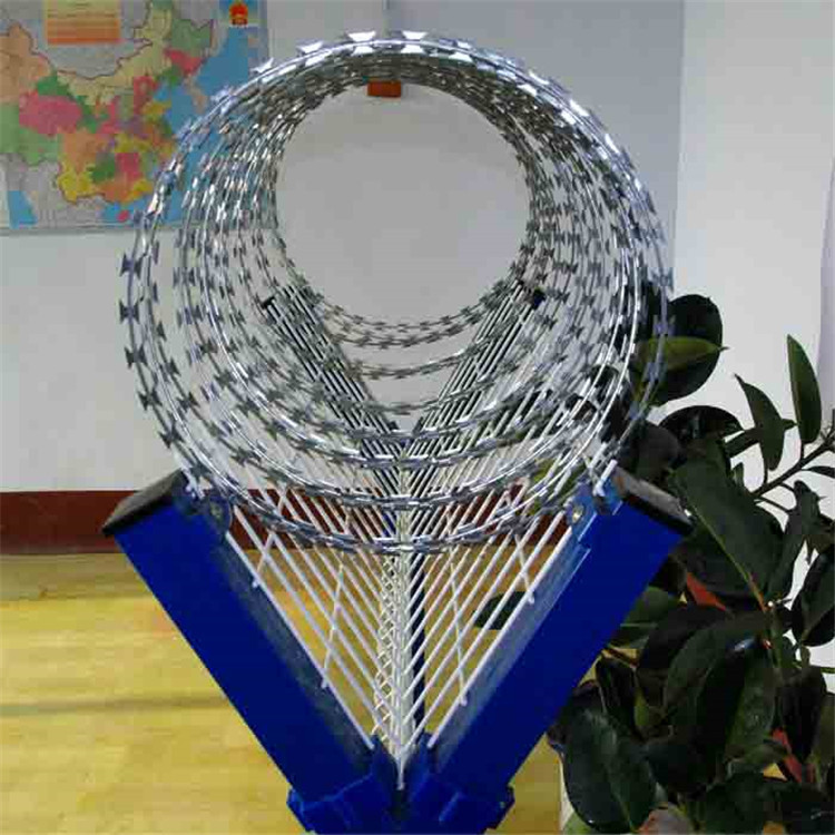 的低碳鋼絲、鍍鋅、涂塑、噴塑熱鍍鋅刺繩防腐形式:電鍍、熱鍍。 規格(安裝方法不同):1.(蛇腹式) 螺旋式刀片刺繩;2.直線型刀片刺繩;3.平板式刀片刺繩;4.刀片刺繩焊接網:螺旋型、直線型、螺旋交叉型三種形式。熱鍍鋅刺繩特點:1.具有美觀、經濟實用、防阻效果好、施便利防護性能好2.具有可靠的保護功能造價低,主要是低碳鋼絲之間的擰接3.安裝方便快捷,只是簡單安裝就可該產品具有嚇阻效果好、美觀、施工便利,經濟實用熱鍍鋅刺繩用途:用于許多國家的工礦企業、園林公寓、邊防哨所、軍事領域、廠區,私人別墅,小區樓房一樓,工地,銀行,印鈔廠,軍事機地,平房,低墻等地的防盜,居民區各種管道防爬使用。