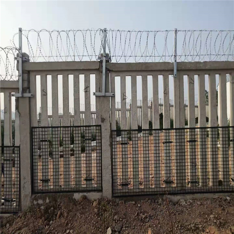 高鐵刺絲滾籠安裝在鋼筋混凝土護(hù)欄的下邊緣與上邊緣之間的垂直間距為0.05m,其通過螺紋連接夾與縱向拉桿連接,該拉桿牢固地固定在支架上。鋼筋混凝土圍欄設(shè)有金屬絲籠,剃須刀桿,縱向拉桿,連接扣和支架。刀片由0.5 mm厚的Q195鋼板制成,支架放置在圍欄的柱子和中跨,跨越3米,其他只放置在柱子的上部。熱浸鍍鋅防腐處理和熱浸塑料的標(biāo)稱包裝與混凝土柱上方的接頭一起進(jìn)行包塑。