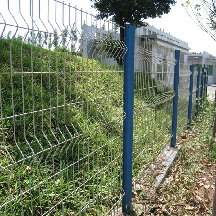 桃型柱護欄網它是的網片采用q 235低碳鋼冷拔絲經熱鍍鋅、瞬間焊接鋼絲鍍鋅面高附著處理、靜電噴塑等生產工藝進行生產,產品保質10年以上防腐。網片采用無邊框焊接方式,方便運輸和安裝,地形適應性強,與立柱連接位隨地面起伏可上下調整;由于桃型立柱護欄網的網片安裝了橫向四道折彎加強筋,使網面強度顯著增加。目前廣泛用于鐵路封閉生活區圍欄場區圍網開發區作為隔離柵使用。