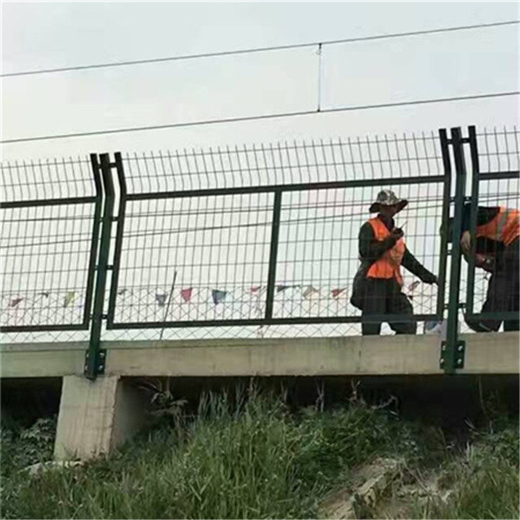 鐵路防護(hù)柵欄也叫鐵路護(hù)欄網(wǎng)、鐵路防護(hù)網(wǎng)、鐵路防護(hù)柵欄,是金屬網(wǎng)片防護(hù)柵欄的樣式之一,主要作用與鐵路倆側(cè)防止防止行人、車輛穿越,保障行車安全的作用,防護(hù)柵欄的結(jié)構(gòu)是由金屬網(wǎng)片、鋼筋混凝土立柱組成。