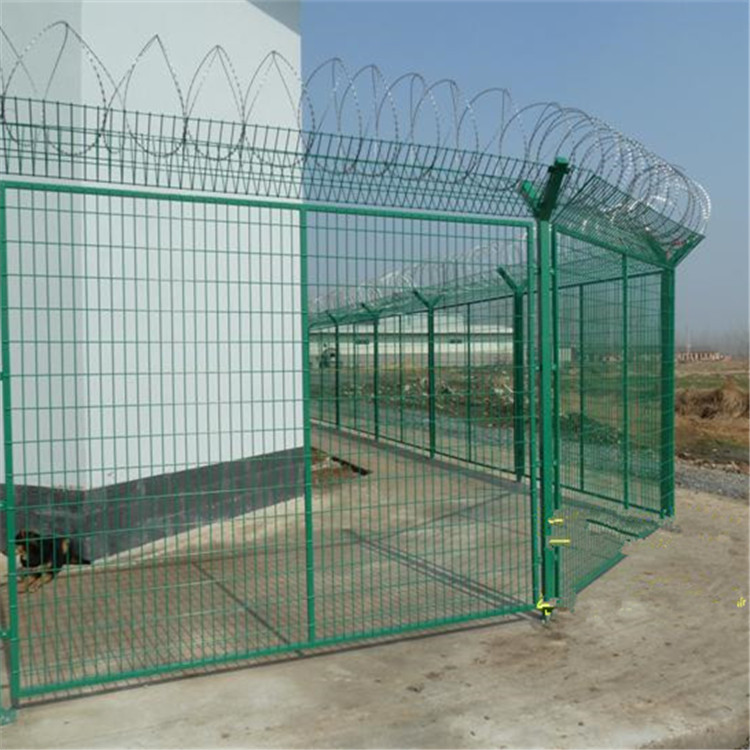 機場圍界又稱作“機場護欄”、“Y型安全防御護網”,它是由V型支架立拄,加強型焊接片網,安全防盜連接件和熱鍍鋅刀片剌籠組成。安全防御性級別很高的隔離柵產品。近年來,被廣泛應用在機場,軍事基地等高安全場所。