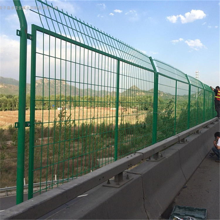 防拋網(wǎng)(又名橋梁防護(hù)網(wǎng)、橋梁護(hù)欄網(wǎng))是由低碳鋼絲經(jīng)過拉拔、編織、焊接、浸塑等一系列工藝加工而成,普遍用于市政高架橋,高速公路立交橋,鐵路立交橋,過街天橋,港口碼頭,畜牧,養(yǎng)植等的護(hù)欄防護(hù)。