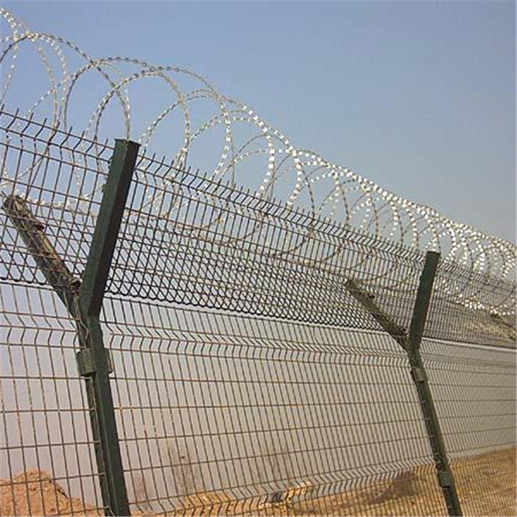 監獄金屬隔離網墻又稱作“Y型安全防御護網”,是由V型支架立柱,加強型焊接片網,安全防盜連接件和熱鍍鋅刀片刺籠組成強度和安全防御性級別很高。近年來,被廣泛應用在監獄,軍事基地等高安全場所。在監獄金屬隔離網墻頂部加裝刀片剌絲、刀片剌繩后又很好的增強了安全防護性能。