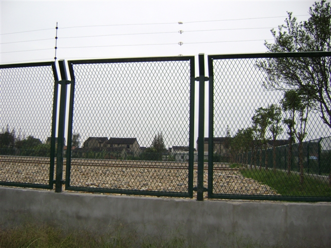 底部:地面以上為澆注水泥式基臺,高50厘米。中部;為金屬菱型網狀鋼管架結構。鋼管與金展網間距,金屬網與底部基臺間距均不大于5厘米。鋼管(或方鋼)高度不低于2:5米,直徑不小手7厘米,網高2.2米,寬1.5米,網絲直徑不小于5厘米網眼見方不大于25平方厘米。 海關隔離網樣式 海關防護圍網 海關保稅區防護網上部, 橫排三根帶鐵絲網,每根同距10厘米。
