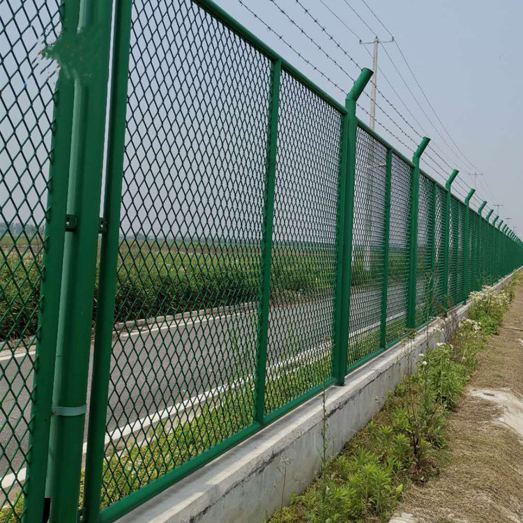 綜合保稅區圍墻金屬網:采用分金屬網狀式,由基座、金屬網狀鋼管架,鐵絲網組成。